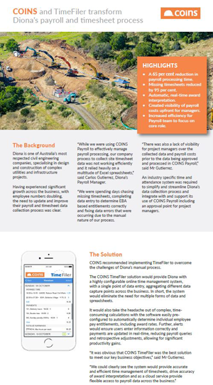 Case Study: COINS and TimeFiler Transform Diona’s Payroll and Timesheet Process